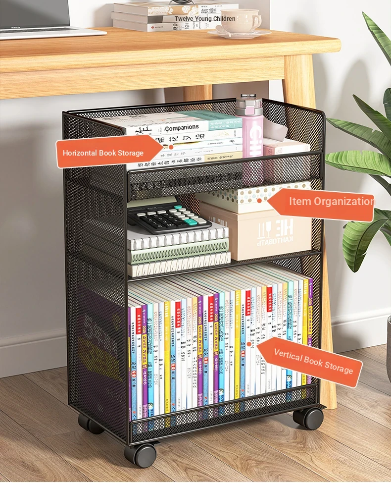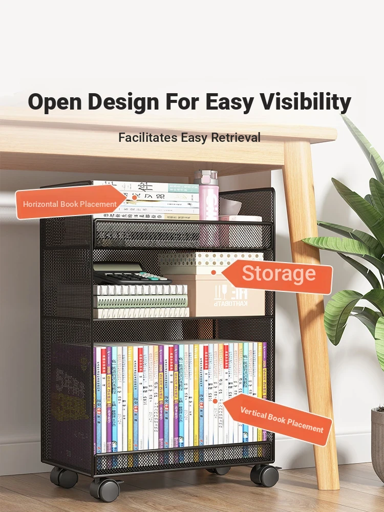 Rolling Storage Cabinet with Bookshelf for Office - Compact Under-Desk Organizer and Floor Bookcase, Mobile Utility Cart for Easy Organization and Accessibility