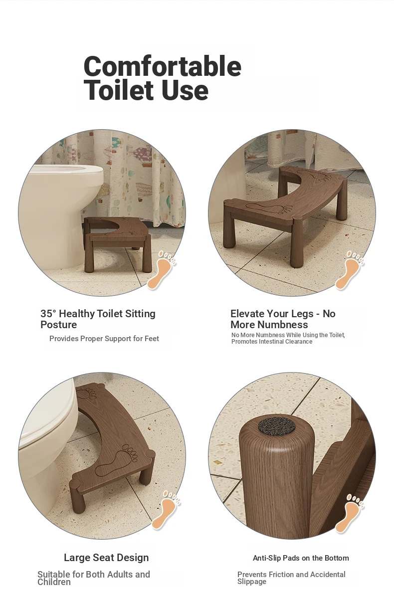 Solid Wood Toilet Stool - Enhanced Squatting Aid for Home Use, Perfect for Bathroom Hygiene, Sturdy Footrest for Kids and Adults, Extra Thick Design for Maximum Comfort.