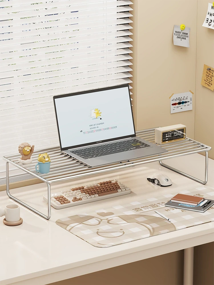 Stainless Steel Laptop Riser - Ergonomic Monitor Stand to Elevate Your Workspace, Perfect for Dorms, Supports Neck Health and Provides Extra Storage Space