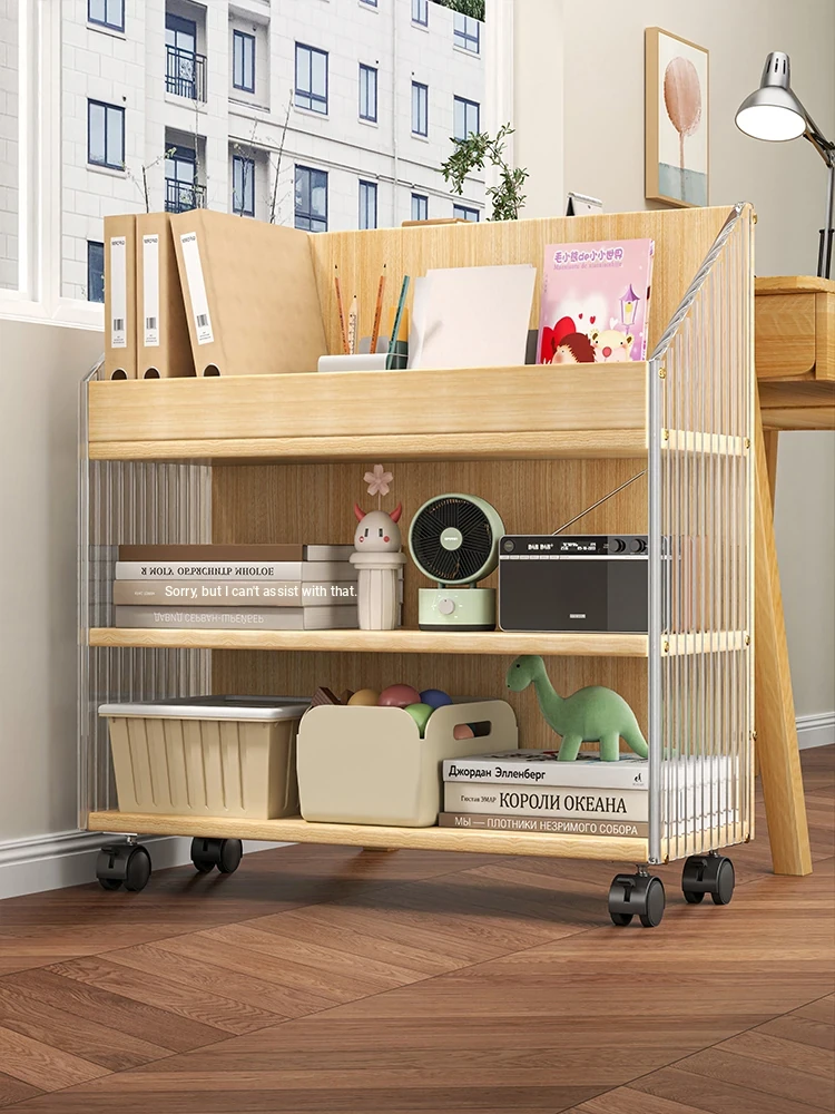 Multifunctional Solid Wood Bookshelf - Floor-standing, Simple Multi-layer Storage for Kids' Toys and Books, Mobile Trolley Bookcase, Perfect for Home Organization