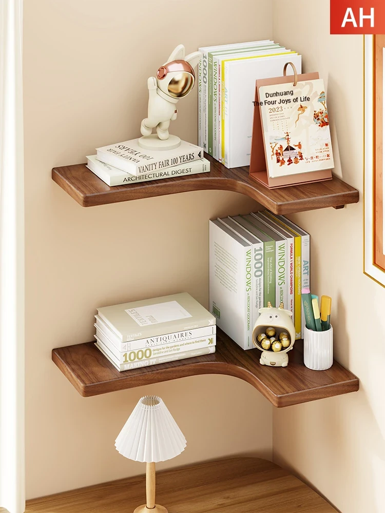 Solid Wood Wall-Mounted Shelving Unit - Stylish Bookcase for Home Office, Kitchen Corner Spice Organizer, Living Room Decorative Shelf - Perfect for Maximizing Space and Enhancing Decor