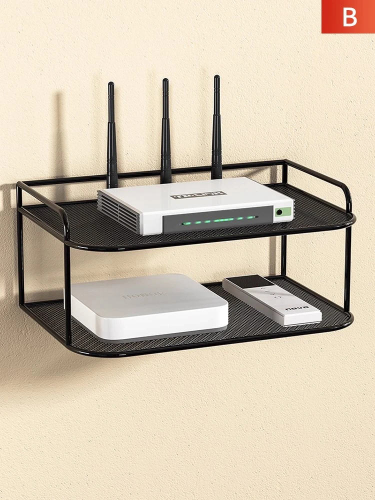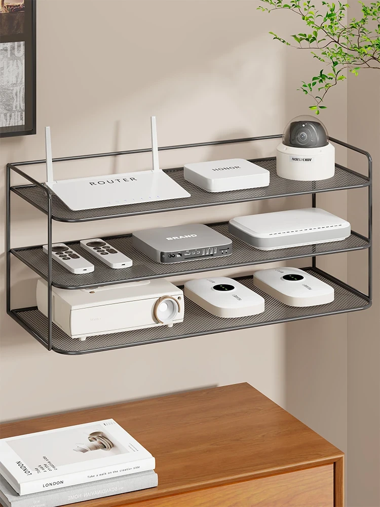 Multi-Layer Router Shelf with Heat Dissipation - Wall-Mounted, No Drilling Required, Perfect for Organizing WiFi Routers and TV Set-Top Boxes