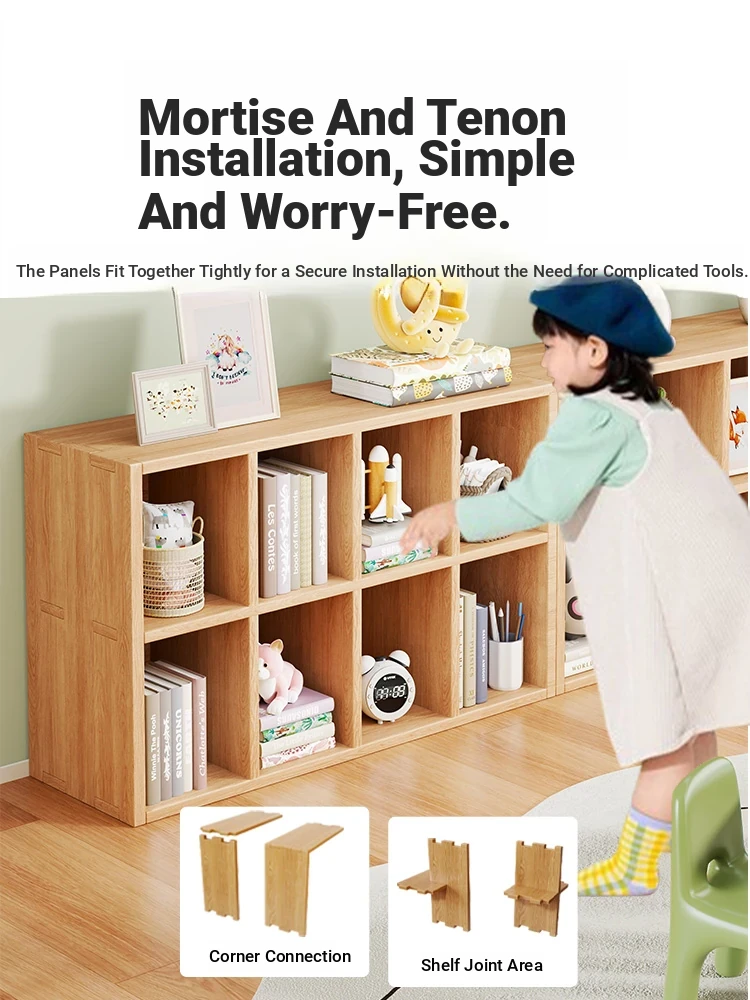 Solid Wood Bookshelf - Freestanding Storage Rack for Home, Living Room, and Kindergarten - Versatile Wall-Mounted Low Cabinet for Easy Backpack Organization and Customizable Arrangements