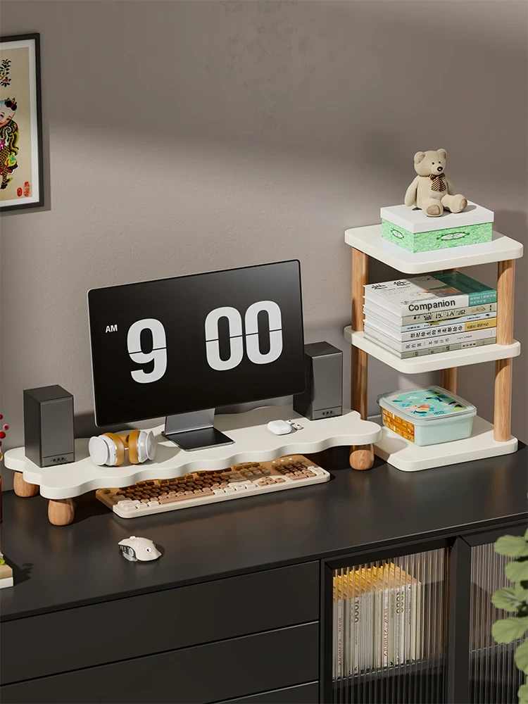 Wooden Monitor Stand with Height Adjustable Design - Desk Organizer Rack for Enhanced Workspace Efficiency and Comfort