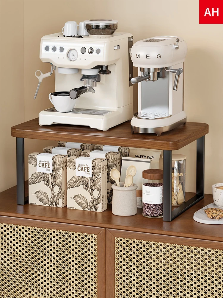 Solid Wood Coffee Machine Storage Rack - Perfect for Coffee Beans, Mugs, and Barware Organization. Stylish and Functional Home Bar Storage Solution.