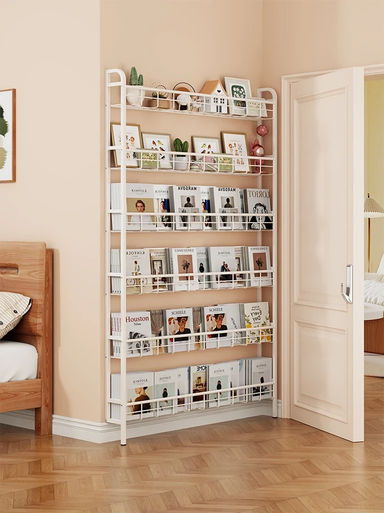 Slim Wall-Mounted Bookshelf - Space-Saving and Easy to Assemble Storage Rack for Kids' Books and Picture Books, Perfect for Home Use and Corner Spaces.