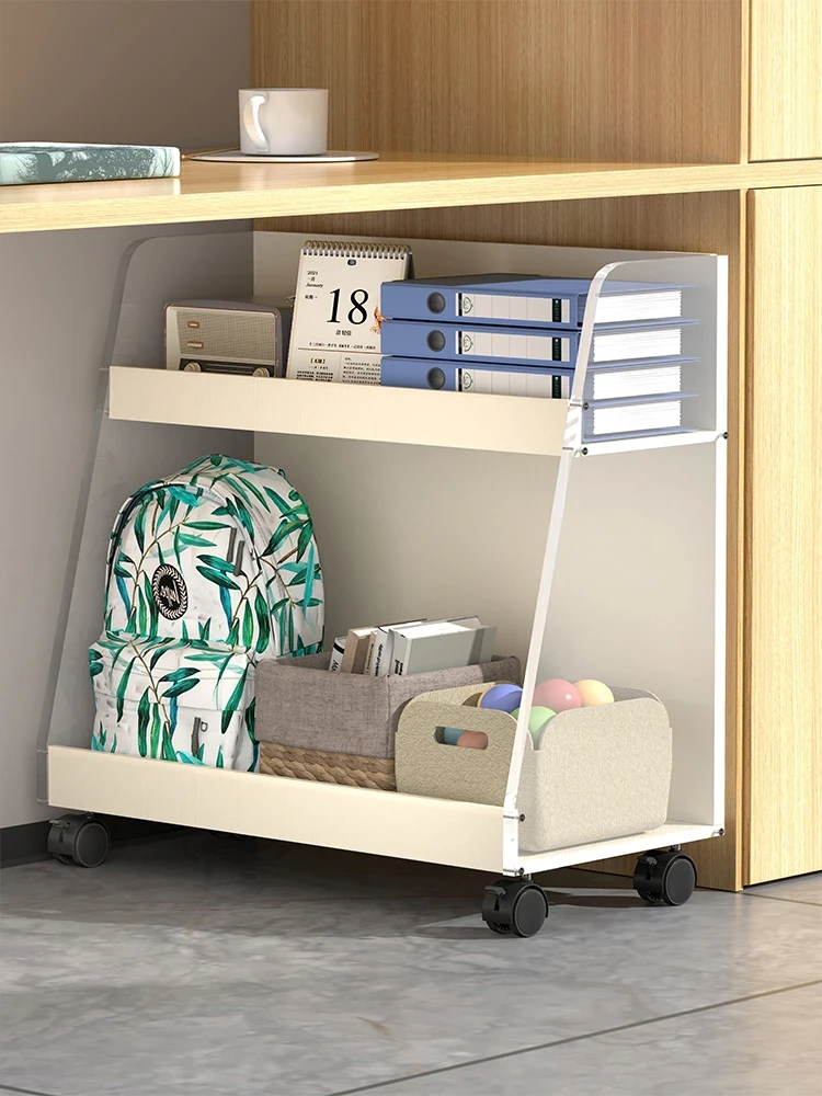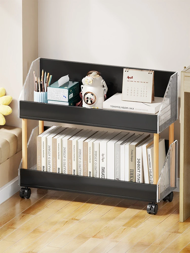 Mobile Acrylic Bookshelf with Wheels - Stylish Storage Cart for Office Desk Organization and Efficient Space Management