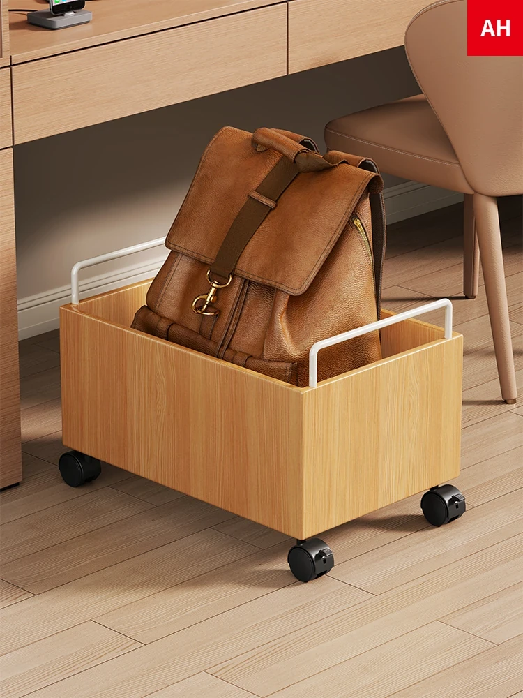 Multifunctional Solid Wood Study Desk with Rolling Storage Basket - Portable Bookshelf and Organizer for Student Dorms, Ideal for Easy Mobility and Efficient Space Management