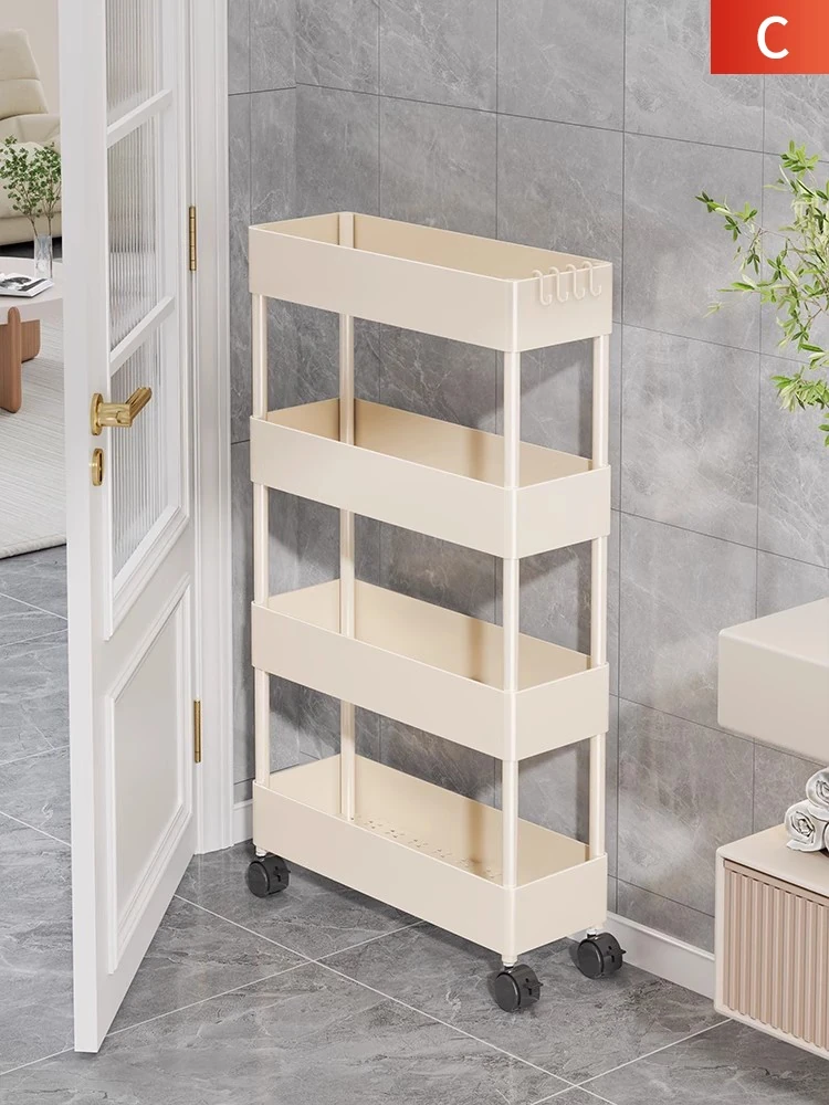 Slim Over-the-Door Storage Rack - Multi-Layer Movable Narrow Cart for Bathroom - Floor-Standing Gap Organizer Cabinet
