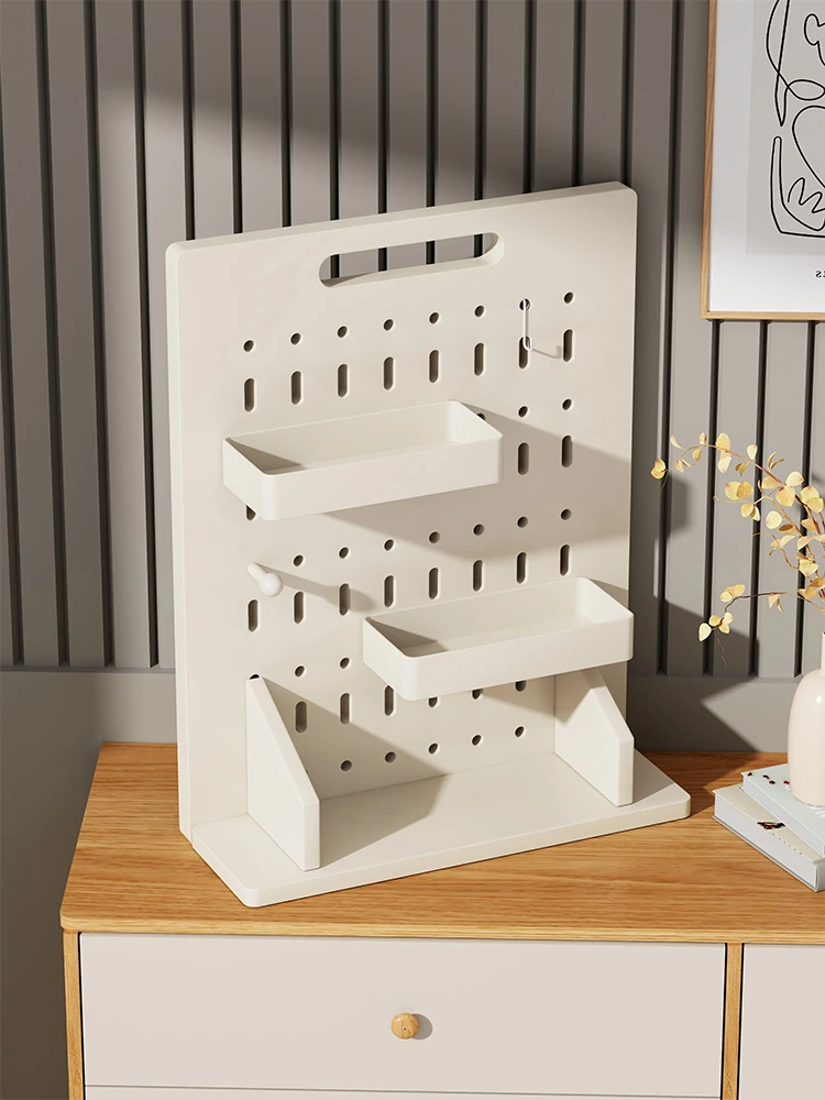 Creamy Vertical Pegboard Organizer for Desktop - Stylish Storage Solution for Office Desks, Perfect for Keeping Your Workspace Tidy and Efficient!