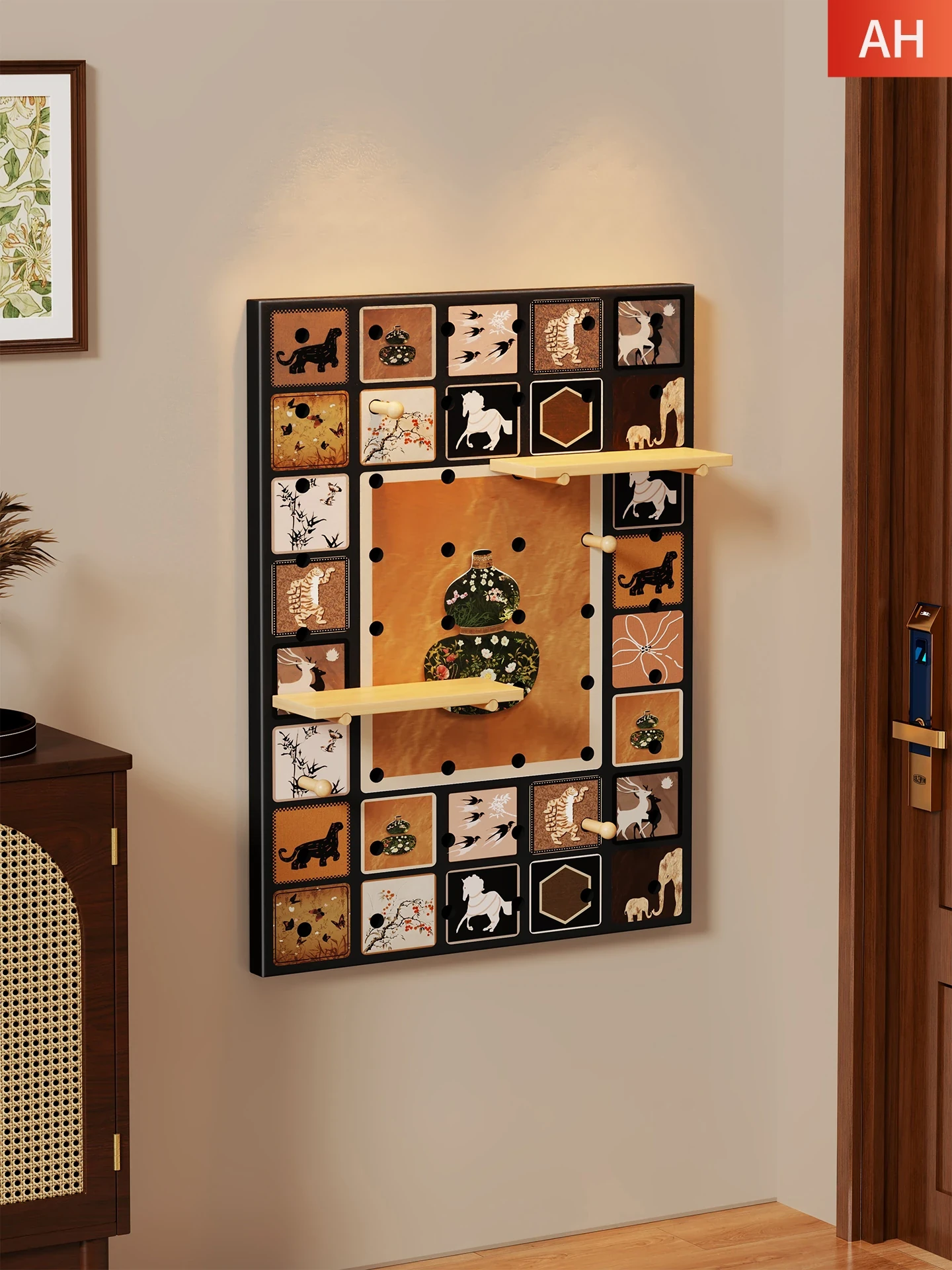 Wooden Pegboard Display Rack for Home - Stylish Storage Solution for Living Room, Desk, and Entryway. Perfect for Organizing and Showcasing Your Essentials!
