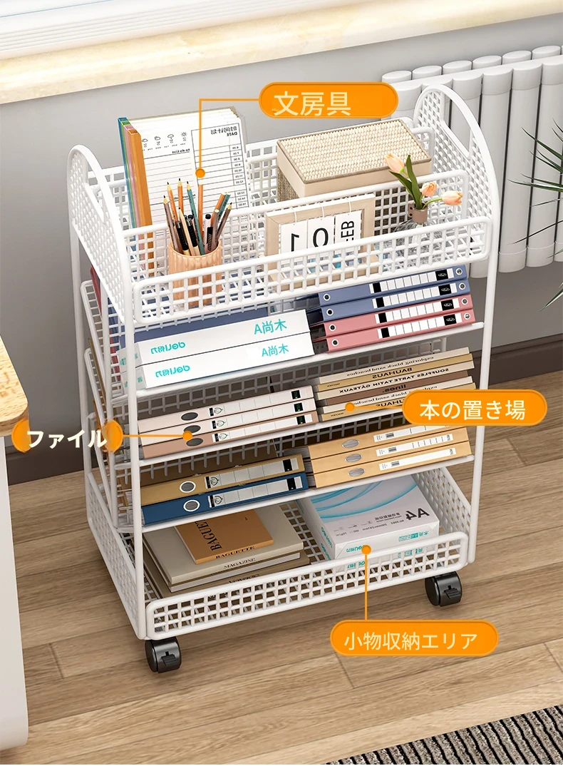 子供用書架デスク下収納ボックス付き移動可能なキャスター付きファイルラック!お部屋をスッキリ整理整頓!デスク周りの必需品、使いやすさ抜群の収納アイテムです!