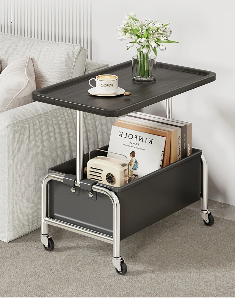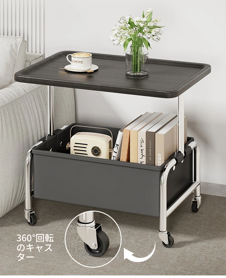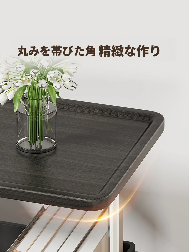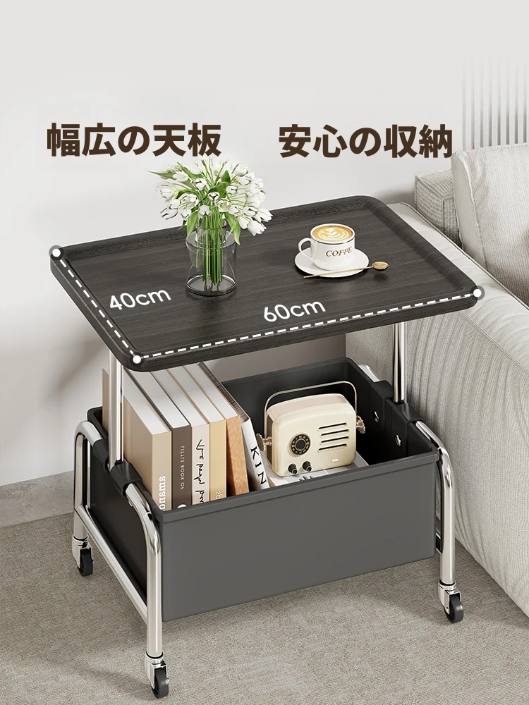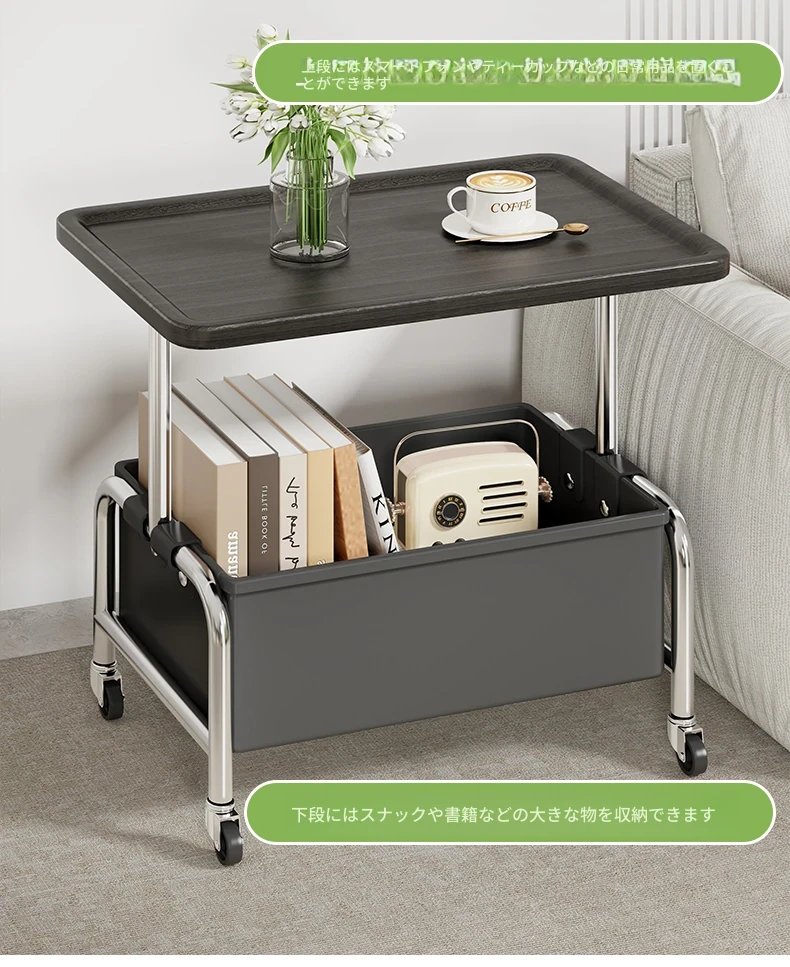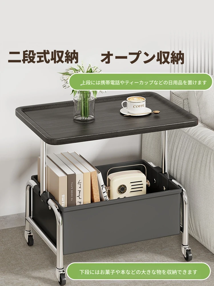 移動式ソファサイドテーブル - 高級感溢れるミニ茶卓&アンティーク風ベッドサイドキャビネット。おしゃれなリビングにぴったりのコンパクトな収納カート!
